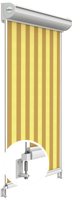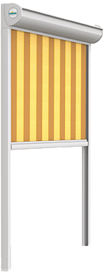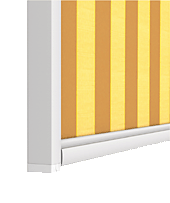 Die Senkrechtmarkise Micro 200 hat eine formschöne Kassette, die dem Tuch im geschlossenen Zustand optimalen Schutz bietet.