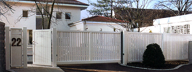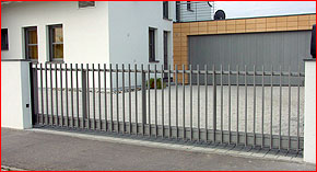 Wenn die Platzverhältnisse für ein freitragendes Tor nicht ausreichen, können wir selbstverständlich auch ein auf Rollen laufendes Schiebetor liefern.