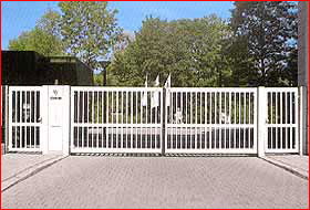 RUKU öffnet die größten Tore: Hofdrehtore als Industrietore in zweiflügeliger Ausführung für Hofeinfahrtsbreiten bis zu 9 m. Wartungsfreier Lauf der Toranlage - auch bei hoher Frequentierung Ihres Firmengeländes.